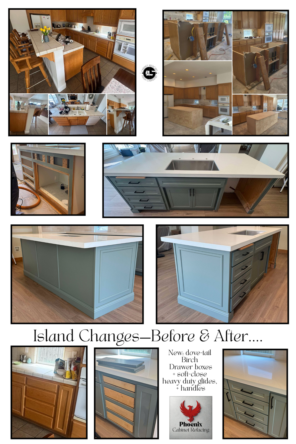 Transform your kitchen with Kitchen Cabinet Refacing Dual-Toned! Explore our compilation of images showcasing the process of cabinet refacing and resurfacing, highlighting the trend of Dual-toned kitchens. Elevate your space with upper cabinets in one color and lowers in a darker tone, or opt for a pop of color on your island. Experience the perfect blend of modern style and functionality with Kitchen Cabinet Refacing.